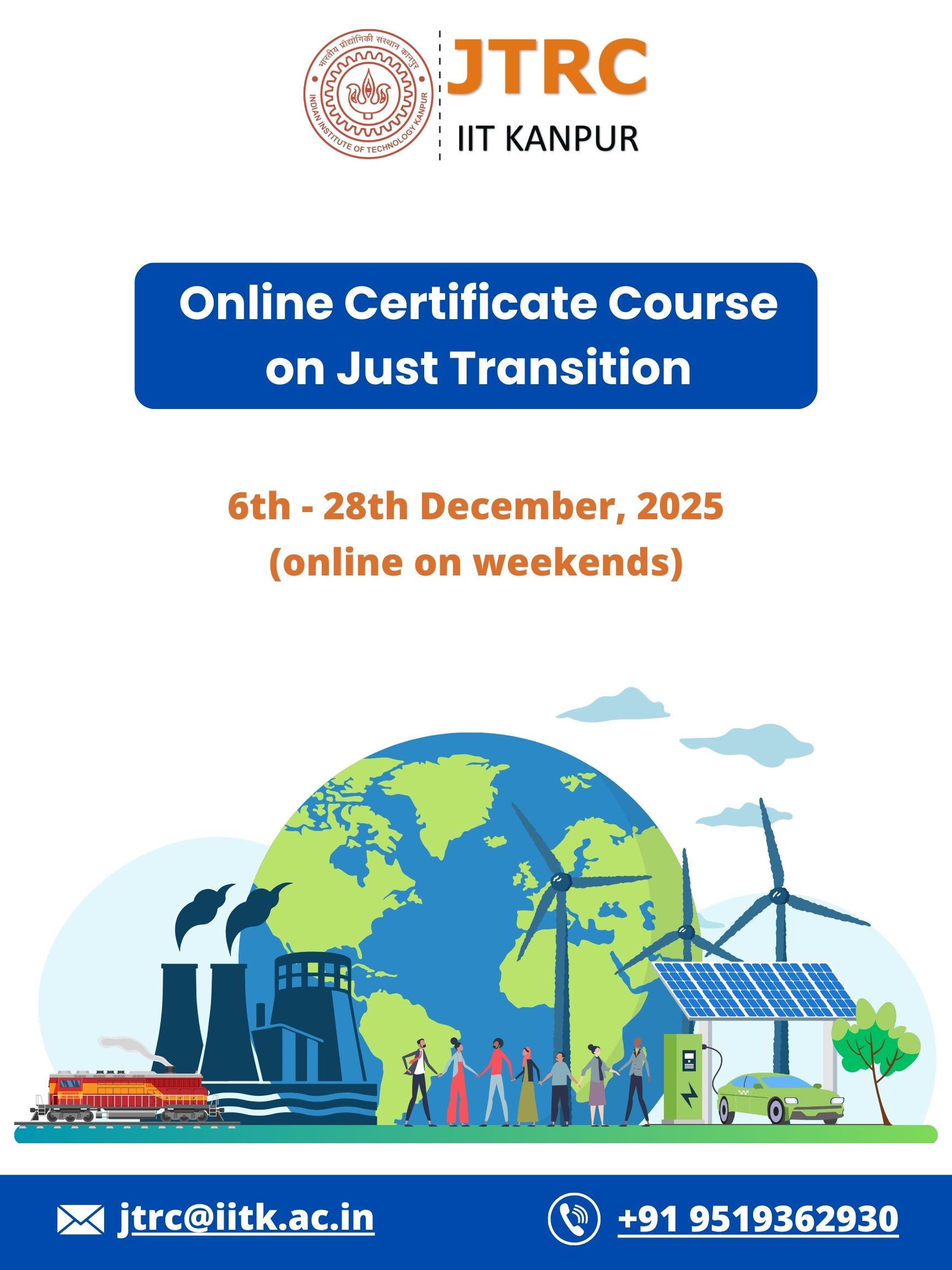 The objective of this twenty-four-hour, four-week course module is to provide researchers, practitioners, policy advisors, and decision makers with a more comprehensive understanding of just transition and its economic ramifications. By studying just transition in its affected regions, you will gain an understanding of its origins, dimensions, and policy ramifications on a national and international scale through the use of real-world examples. This certificate course will also include an opportunity to Campus Immersion Program at IIT Kanpur.